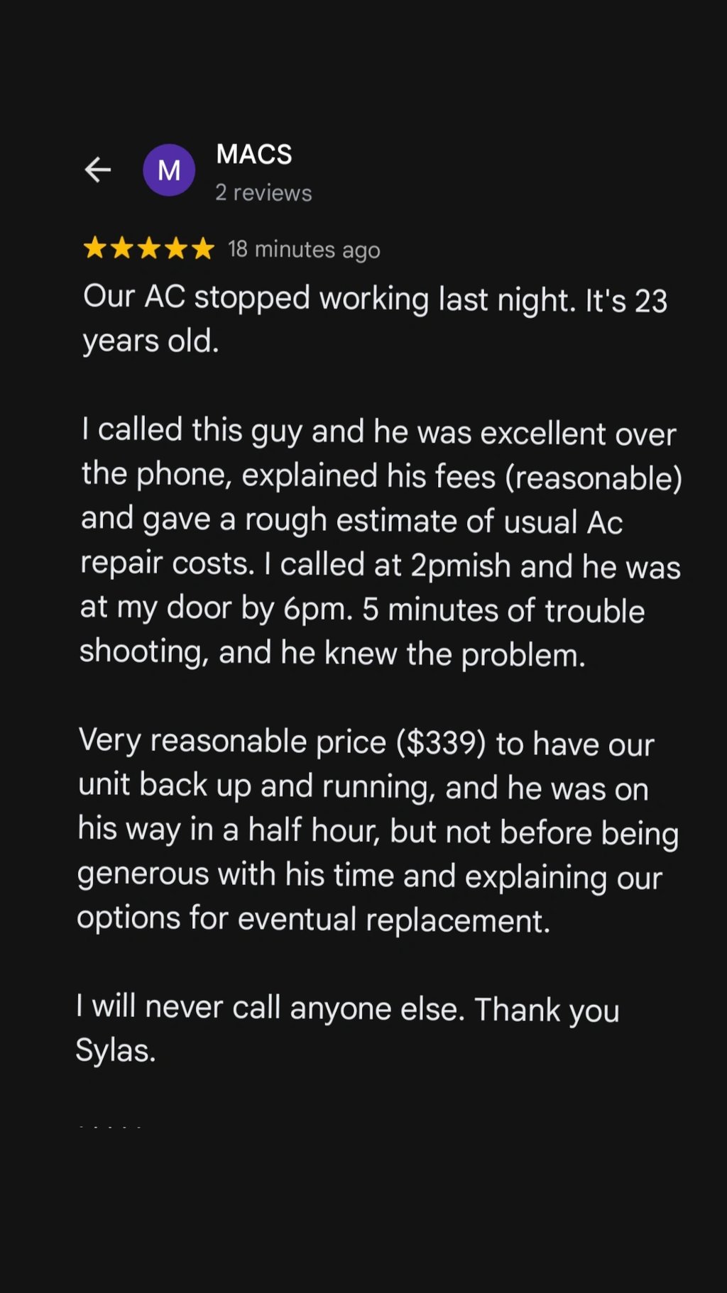 air-conditioners fixed in 12 hours without dealing with endless hold times and unreturned calls.